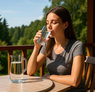 Drink water throughout the day (often around 1.5–2 liters, adjusted to person and climate)